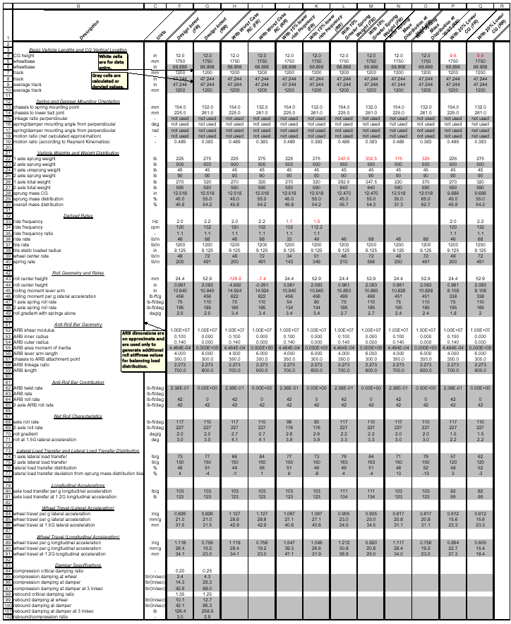 *Vehicle Dynamics Calculations Spreadsheet